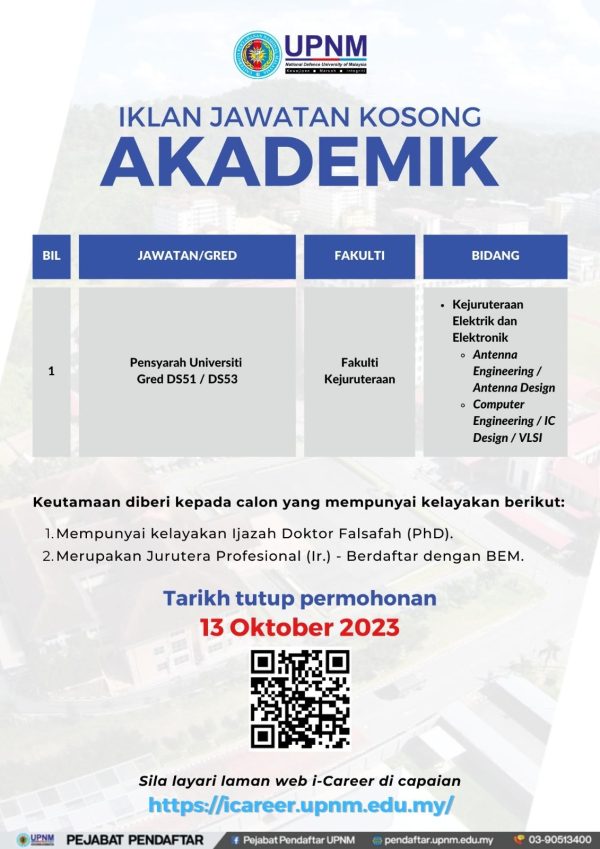 Iklan Jawatan Kosong Universiti Pertahanan Nasional Malaysia (UPNM)
