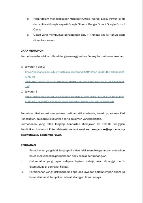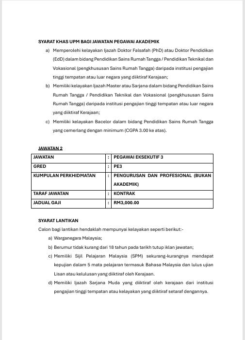 Iklan Jawatan Kosong Universiti Putra Malaysia (UPM)