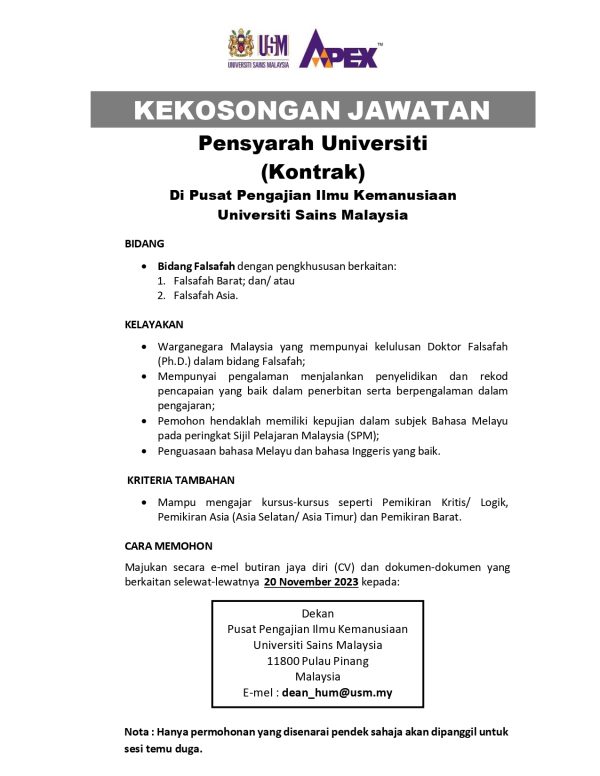 Iklan Jawatan Kosong Universiti Sains Malaysia (USM)