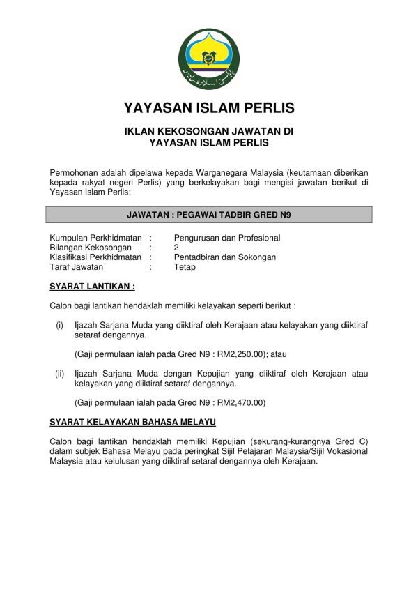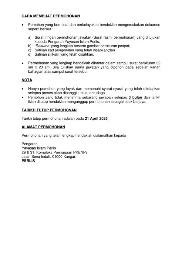 Iklan Jawatan Kosong Yayasan Islam Perlis