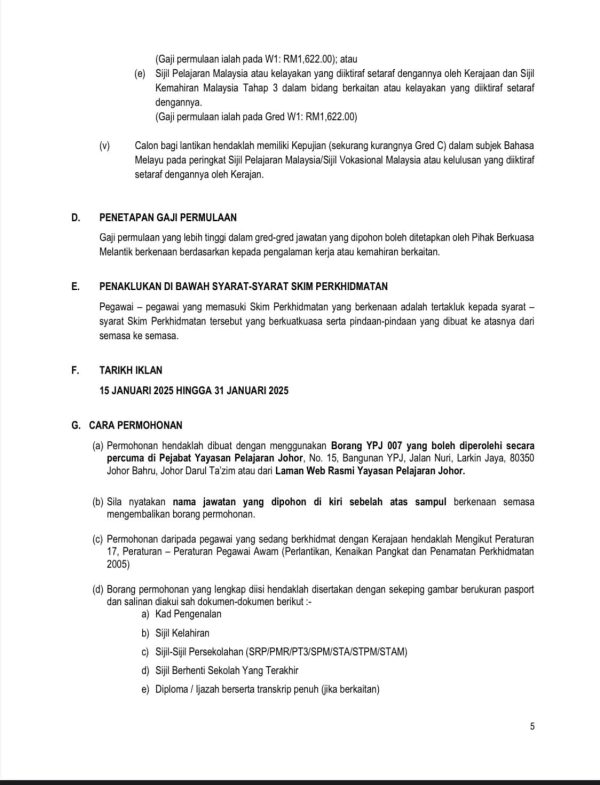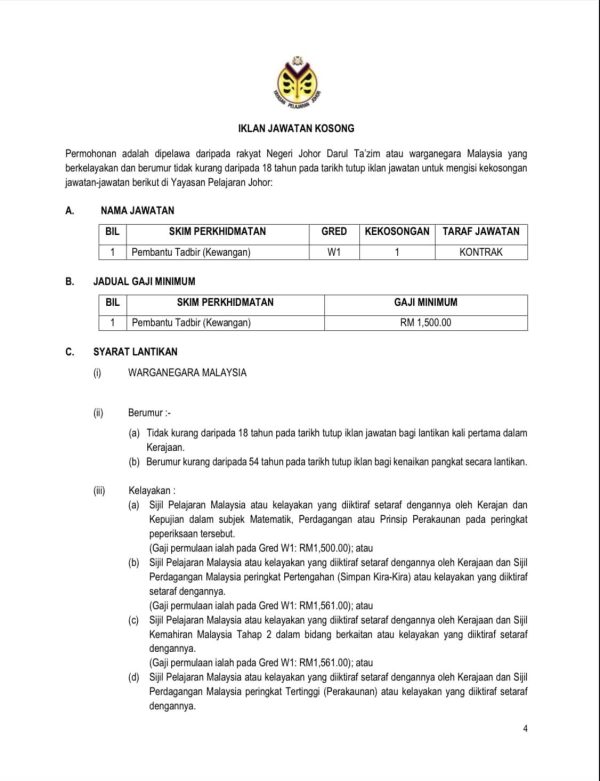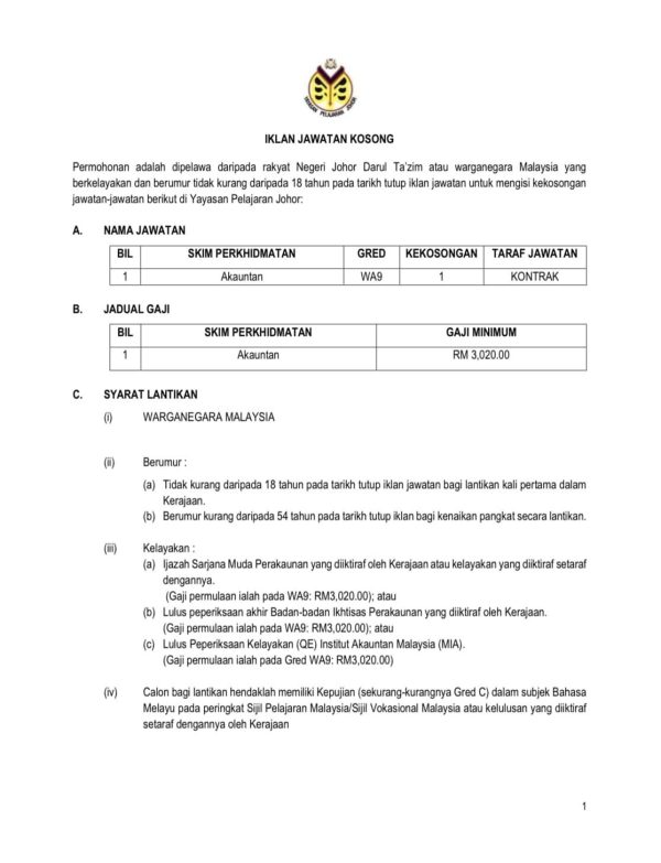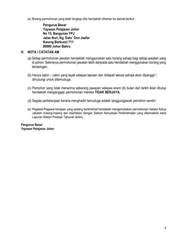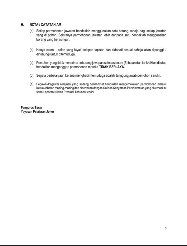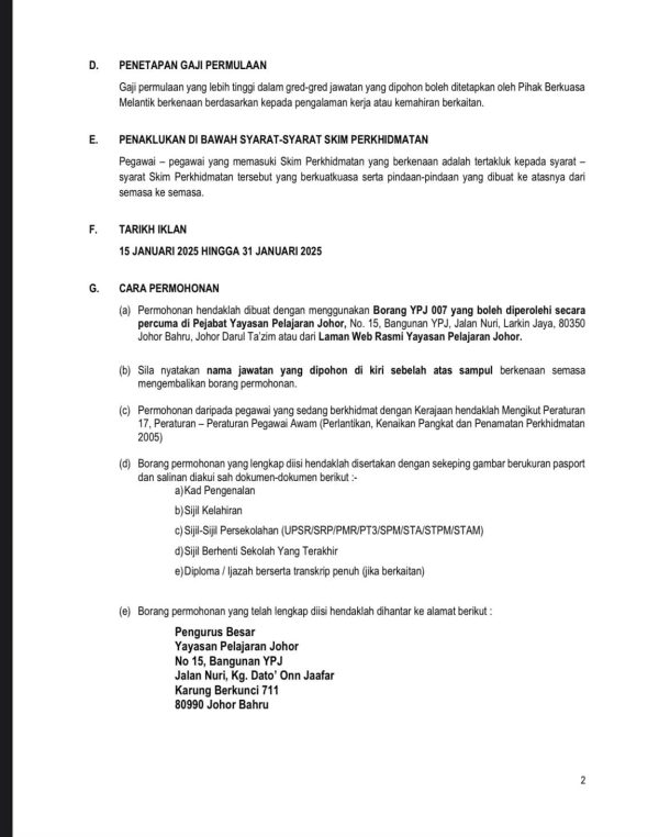 Iklan Jawatan Kosong Yayasan Pelajaran Johor