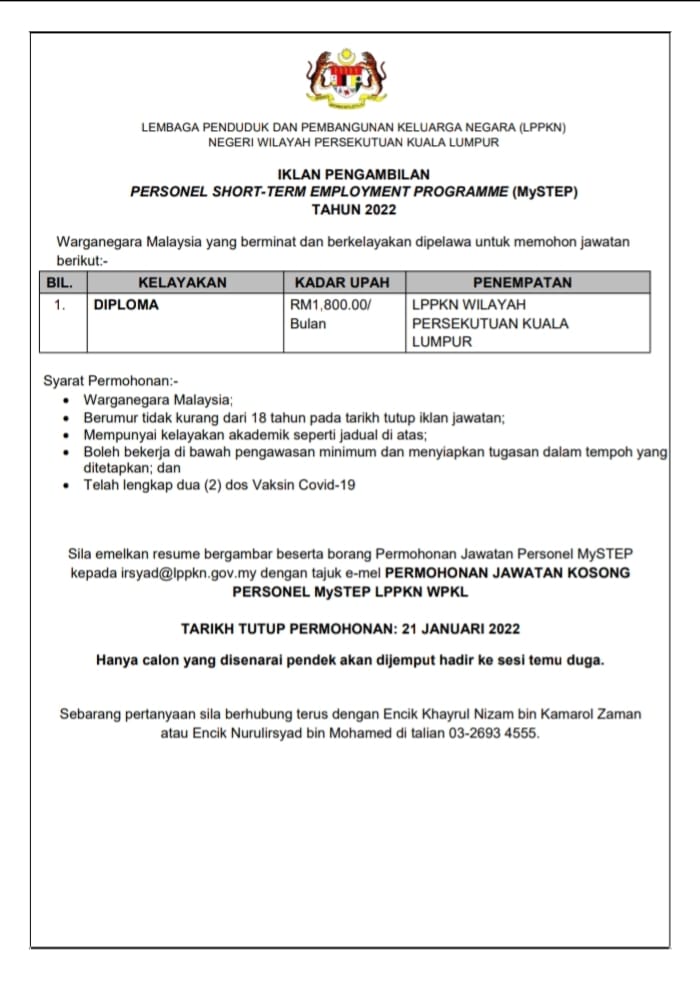 Iklan Jawatan Lembaga Penduduk dan Pembangunan Keluarga Negara