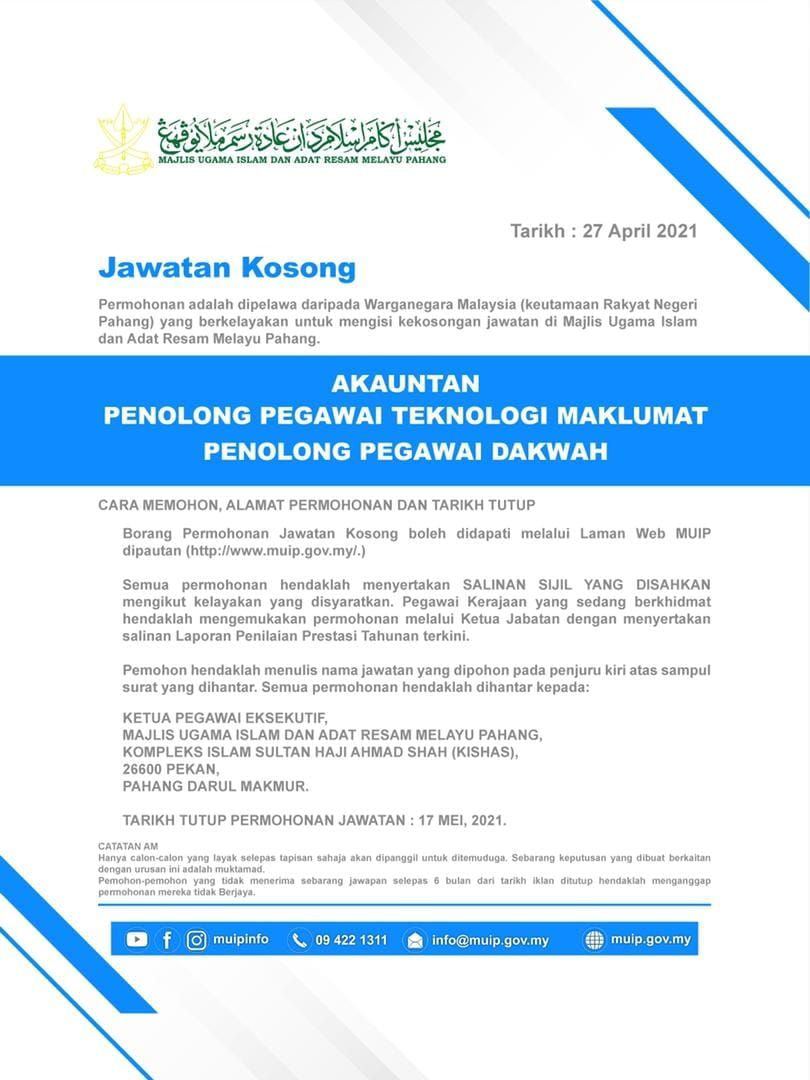 Iklan Jawatan Majlis Agama Islam Dan Adat Resam Melayu Pahang