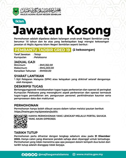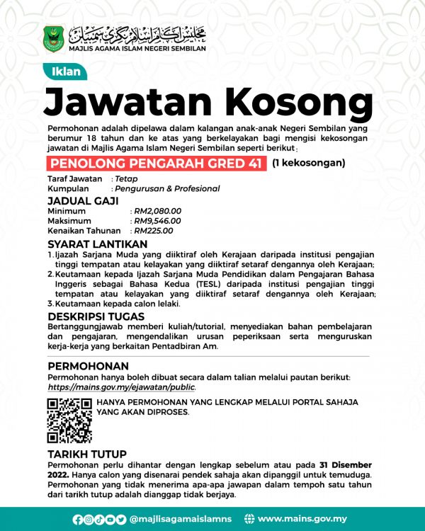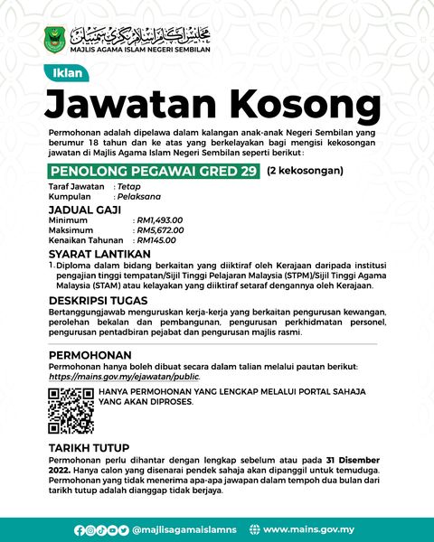 Iklan Jawatan Majlis Agama Islam Negeri Sembilan