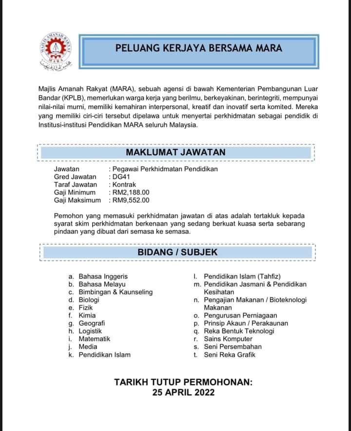Iklan Jawatan Majlis Amanah Rakyat (MARA)