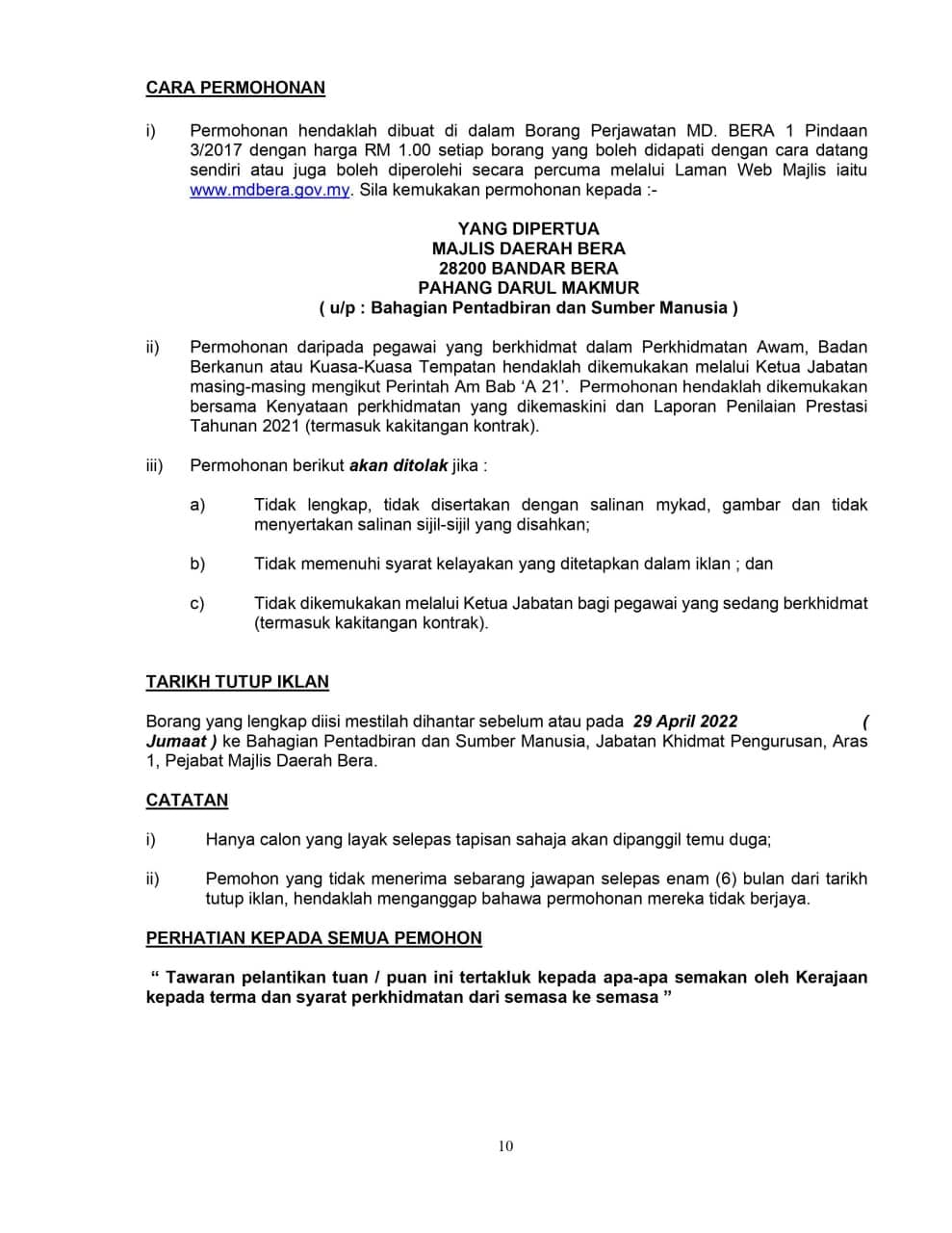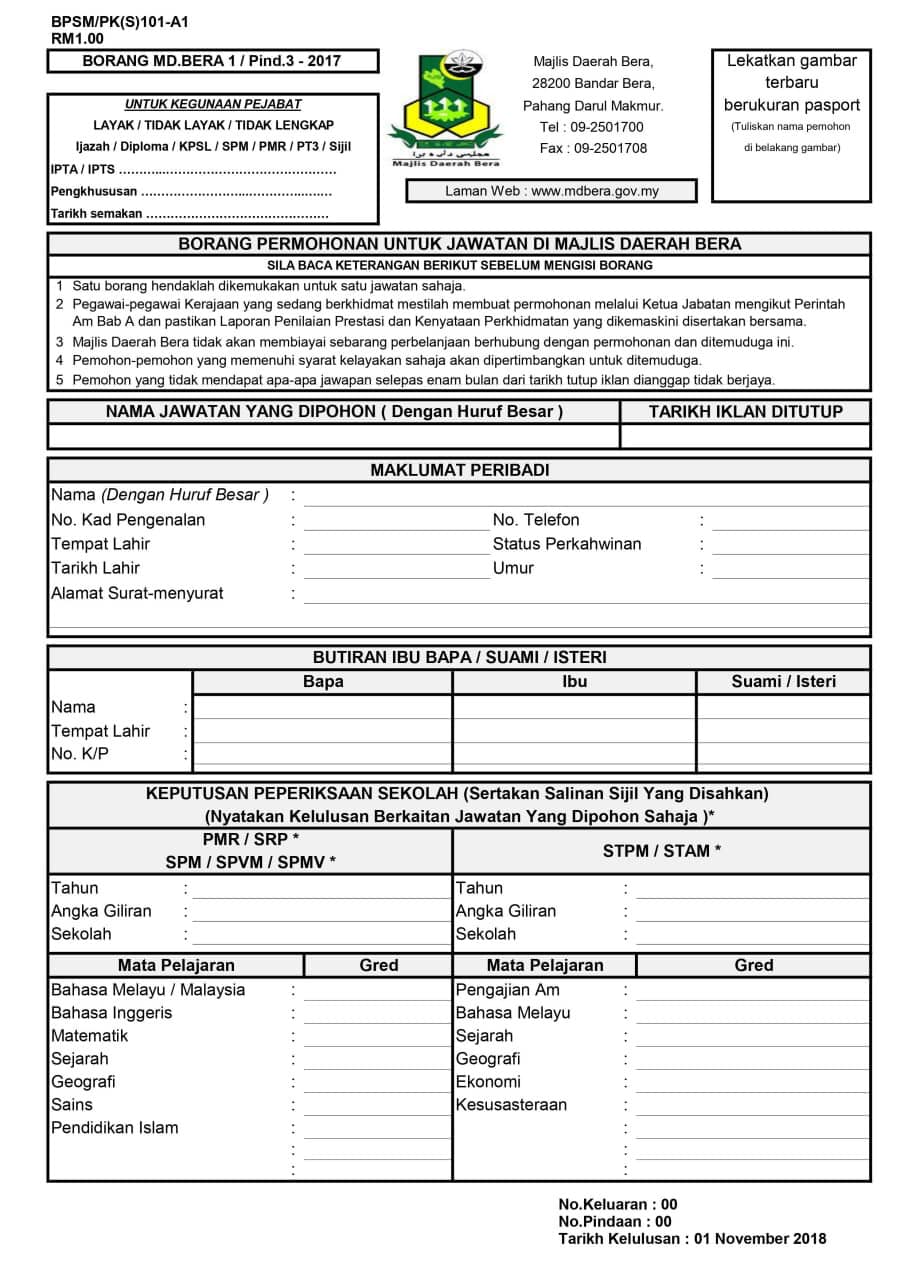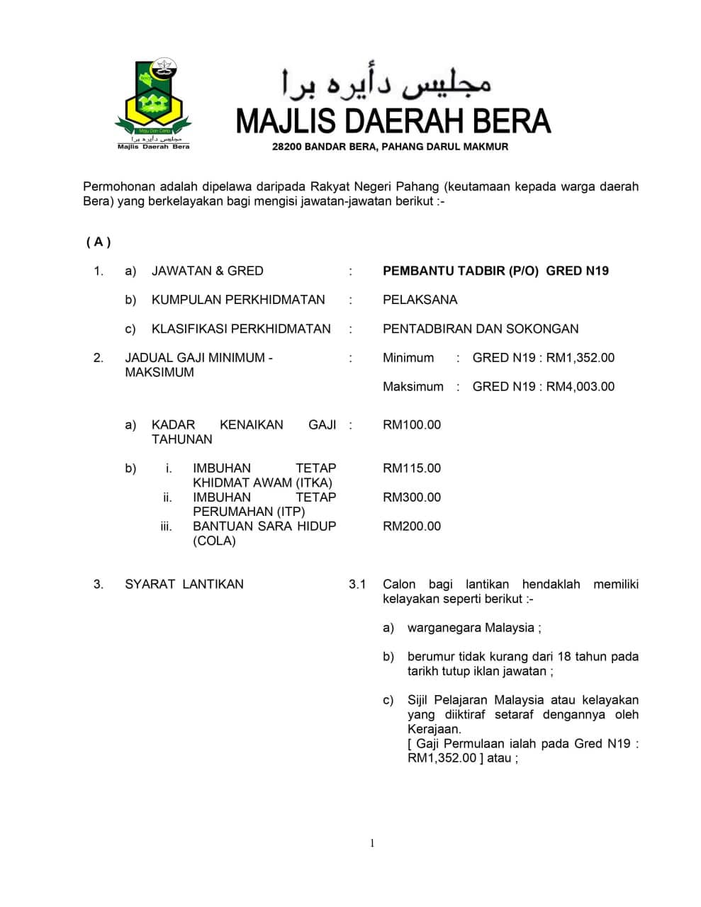 Iklan Jawatan Majlis Daerah Bera
