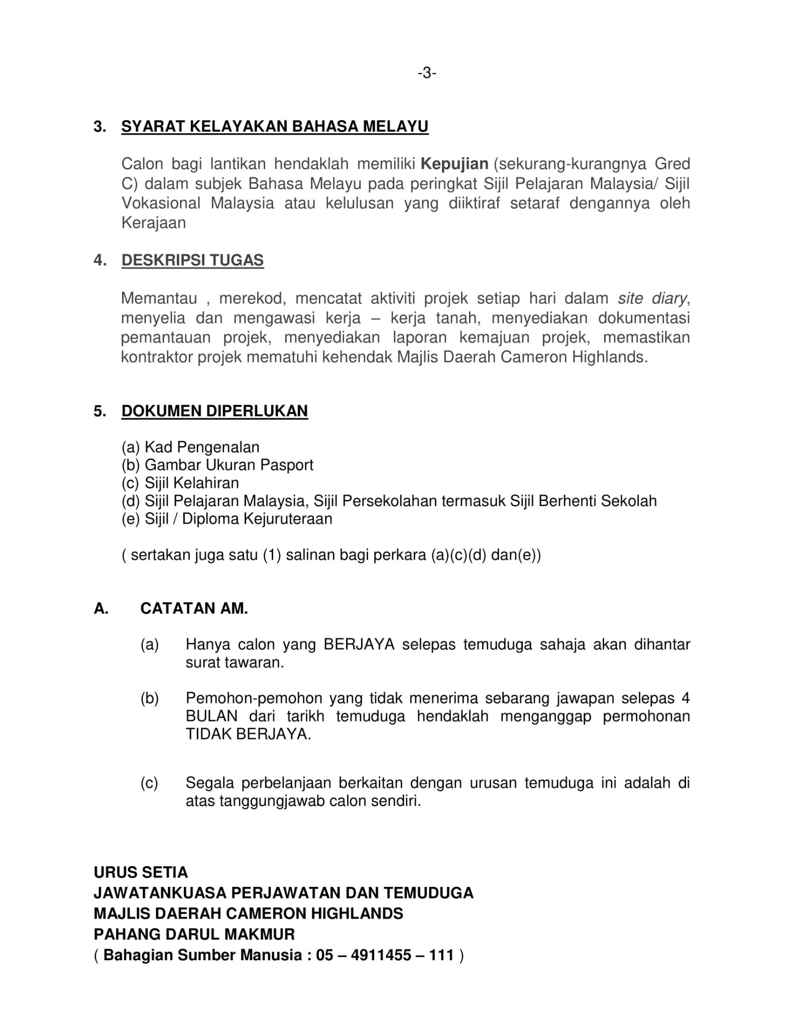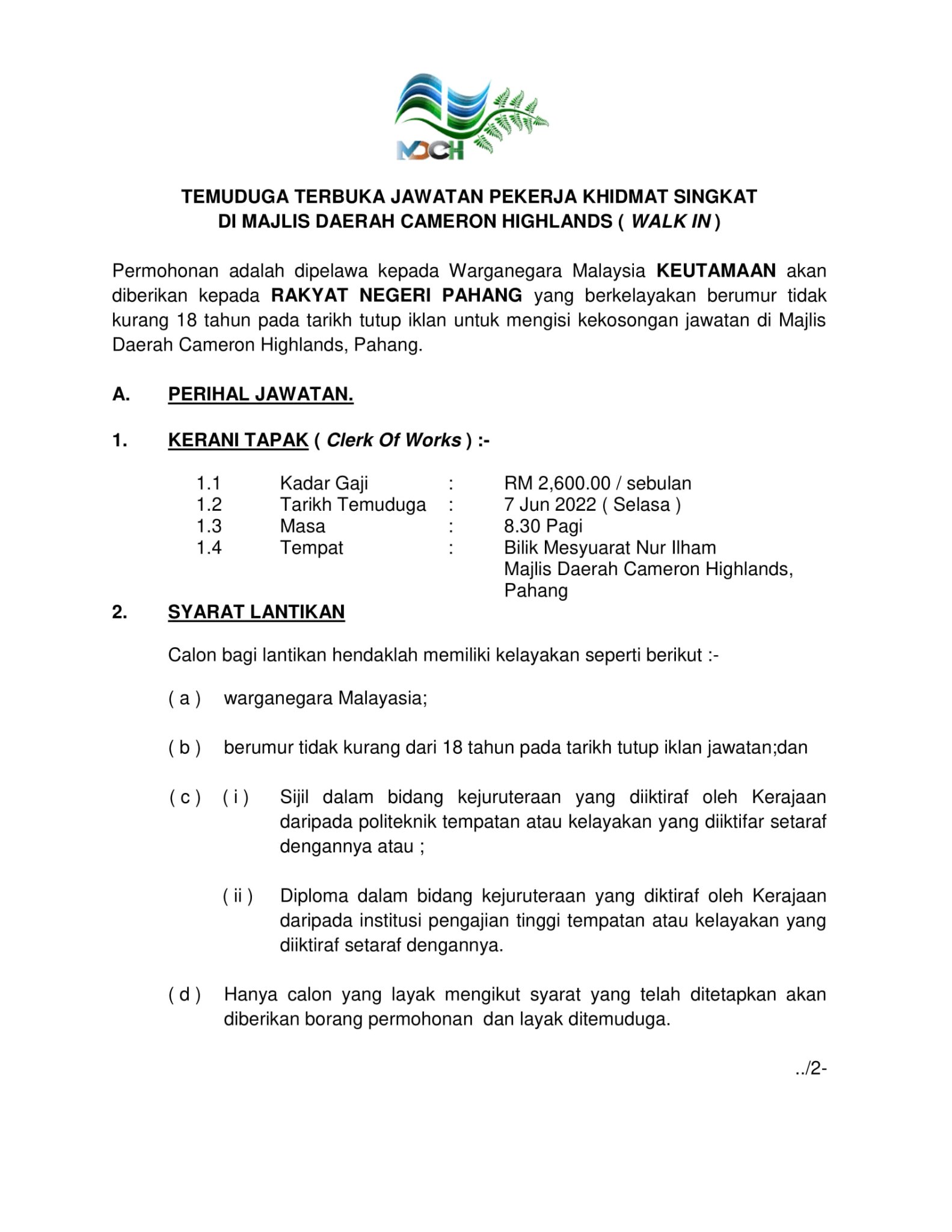 Iklan Jawatan Majlis Daerah Cameron Highlands
