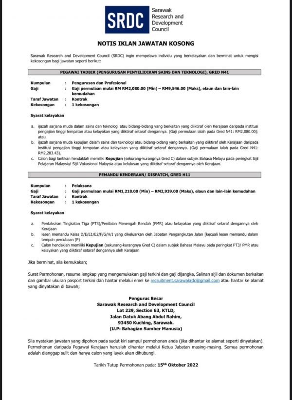 Iklan Jawatan Majlis Penyelidikan Dan Pembangunan Sarawak