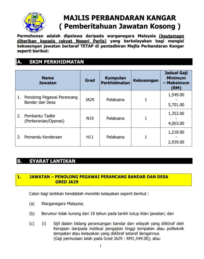 Iklan Jawatan Majlis Perbandaran Kangar (MPK)