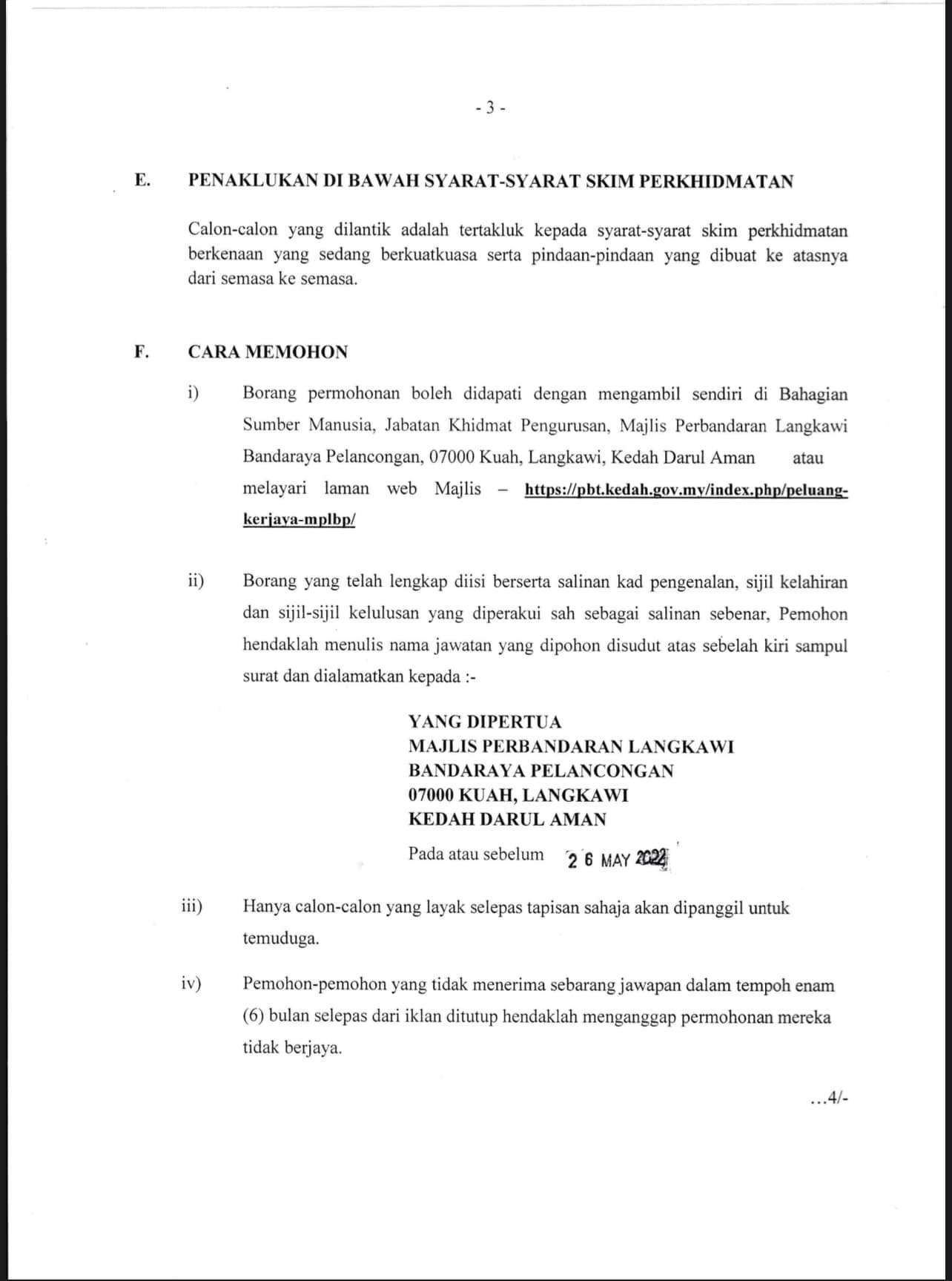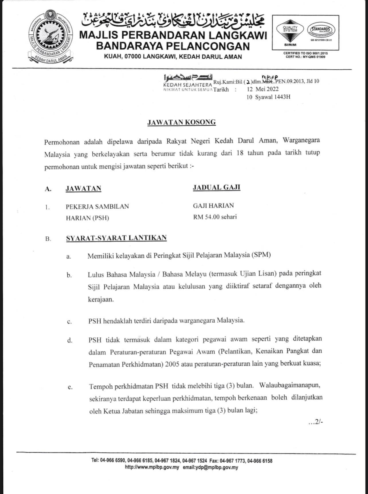 Iklan Jawatan Majlis Perbandaran Langkawi Bandaraya Pelancongan (MPLBP)