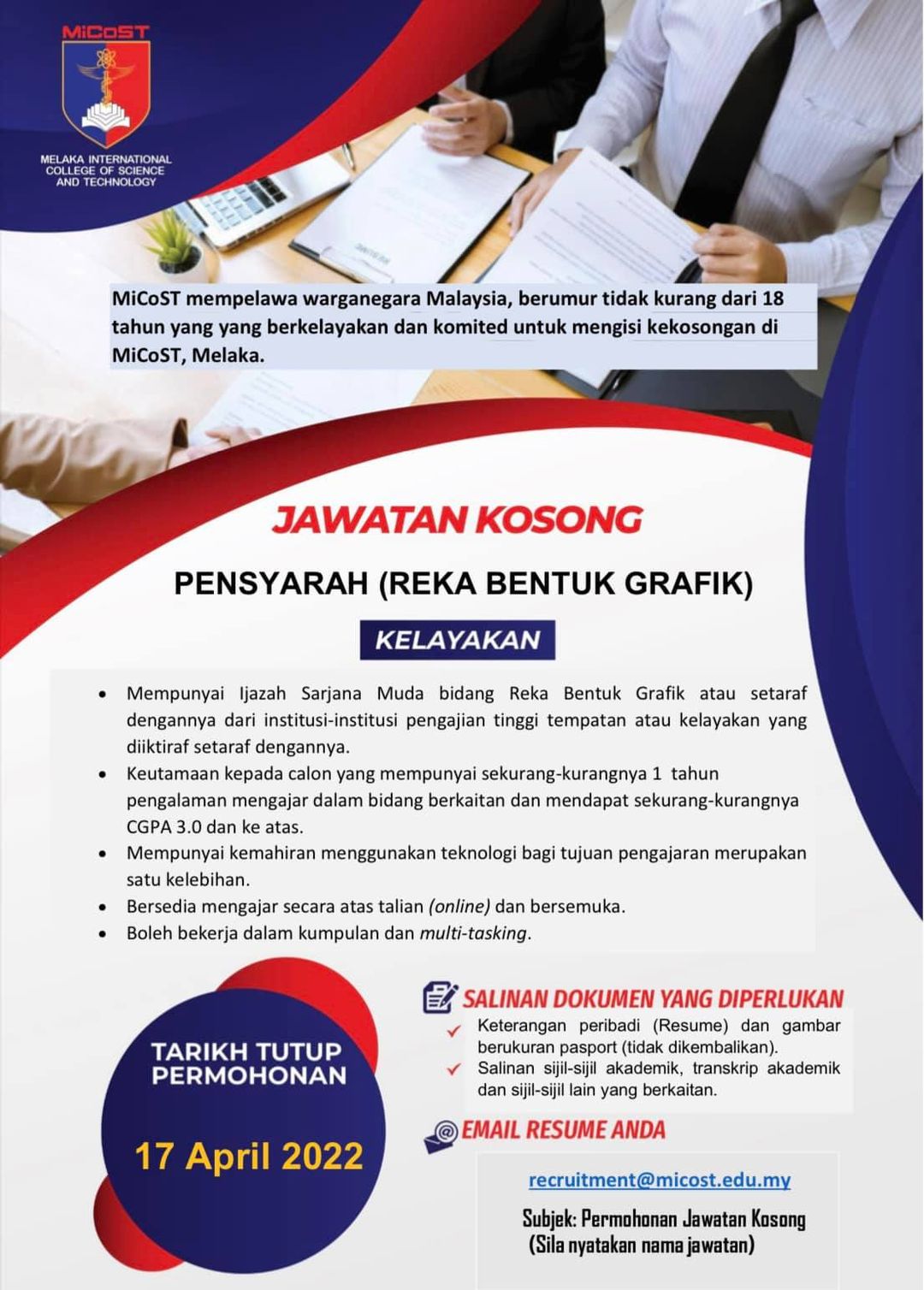 Iklan Jawatan Melaka International College of Science and Technology (MiCoST)