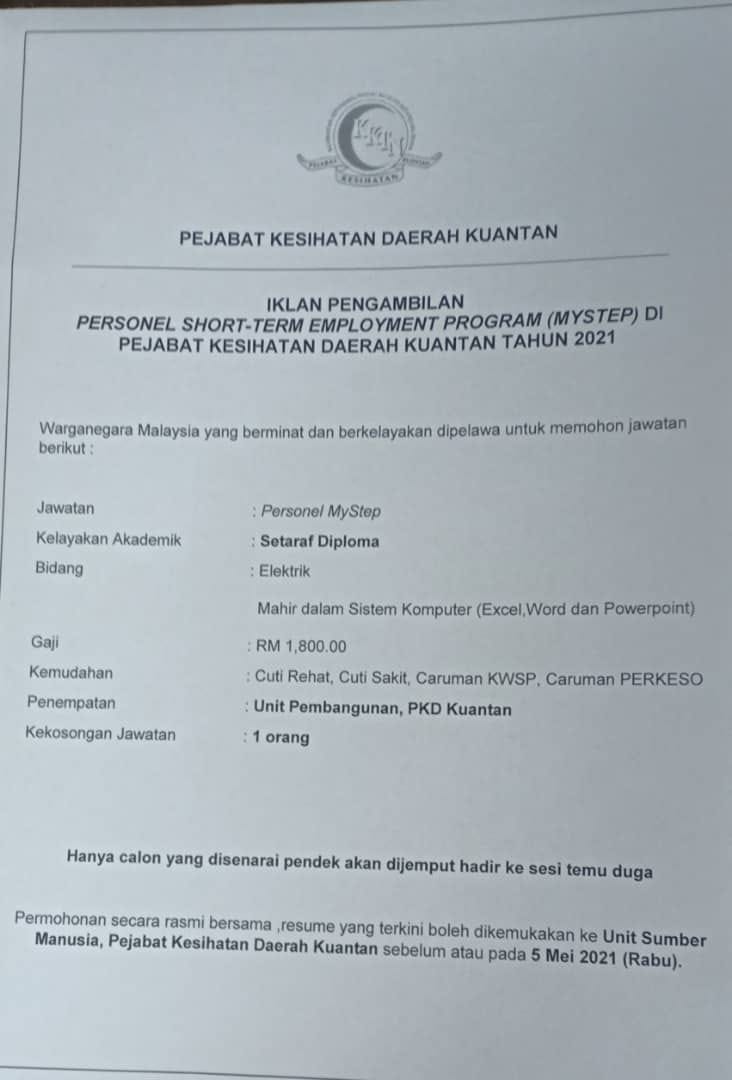 Iklan Jawatan Pejabat Kesihatan Daerah Kuantan