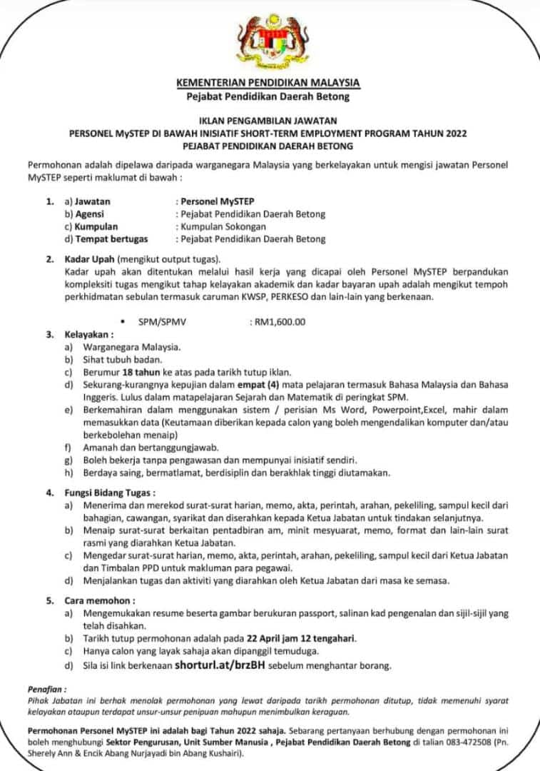 Iklan Jawatan Pejabat Pendidikan Daerah Betong