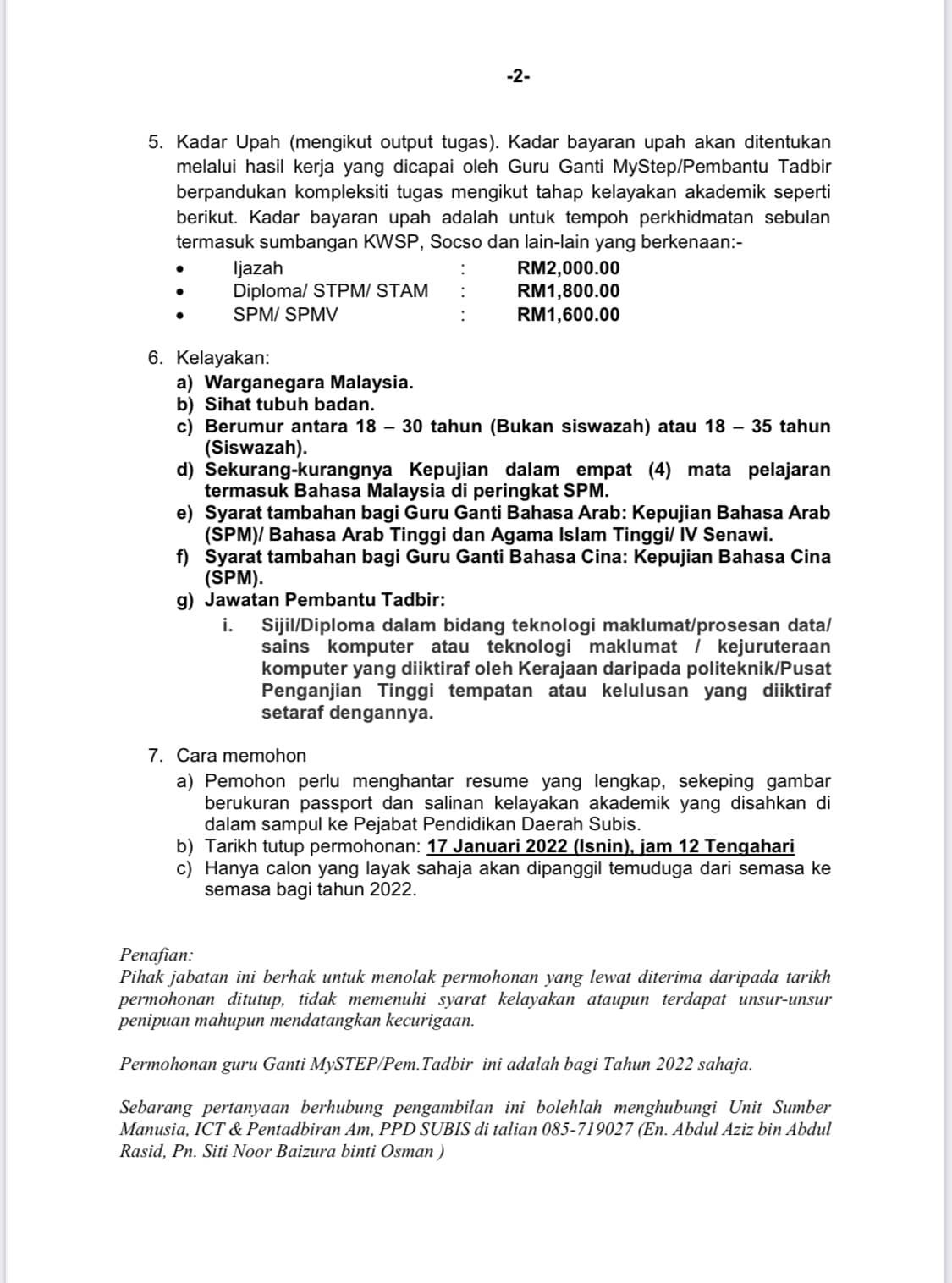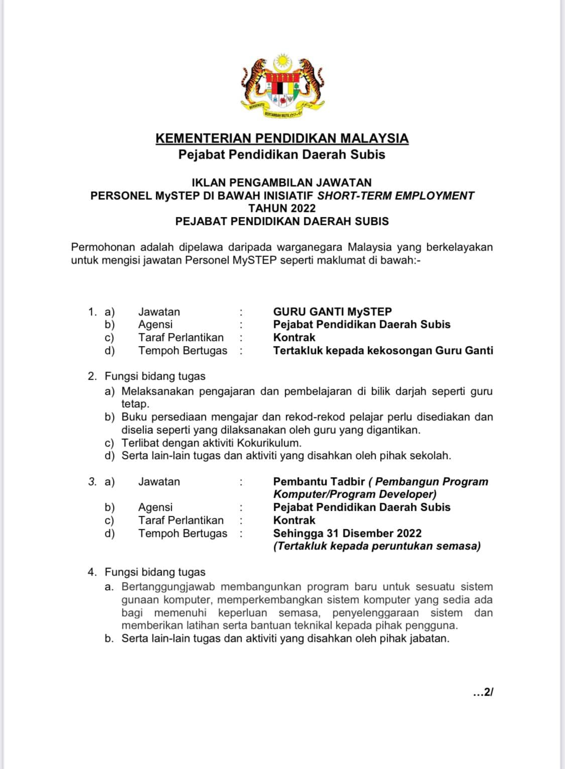Iklan Jawatan Pejabat Pendidikan Daerah Subis