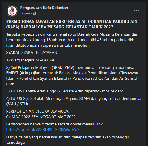 Iklan Jawatan Pengurusan Kafa Kelantan