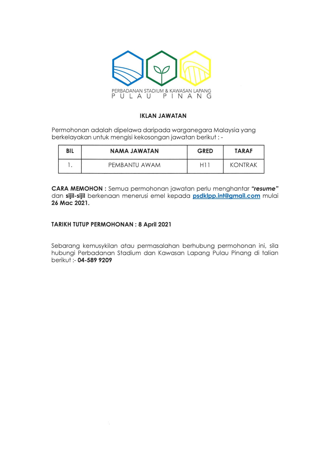 Iklan Jawatan Perbadanan Stadium & Kawasan Lapang Pulau Pinang