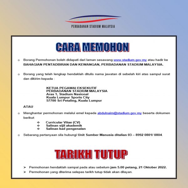Iklan Jawatan Perbadanan Stadium Malaysia