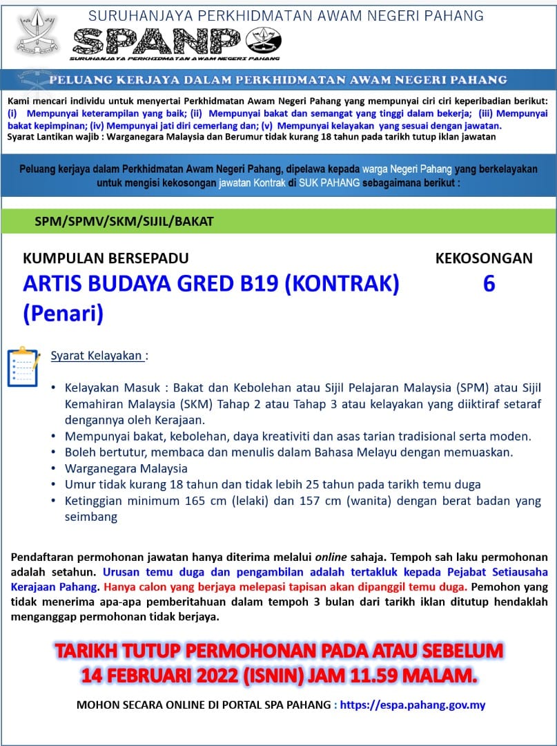 Iklan Jawatan Perkhidmatan Awam Negeri Pahang