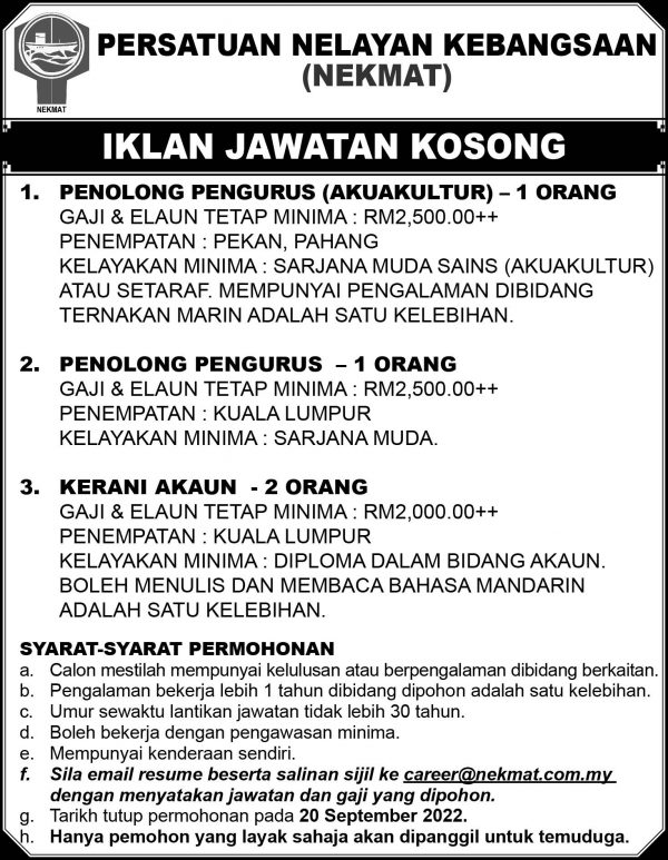 Iklan Jawatan Persatuan Nelayan Kebangsaan (NEKMAT)