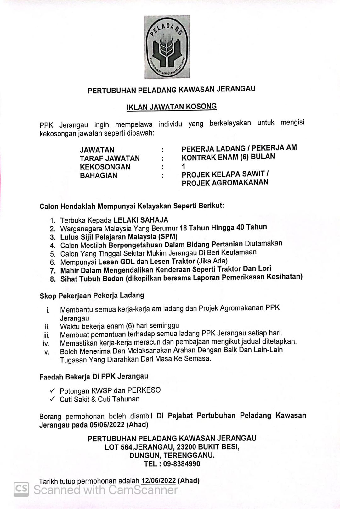 Iklan Jawatan Pertubuhan Peladang Kawasan Jerangau
