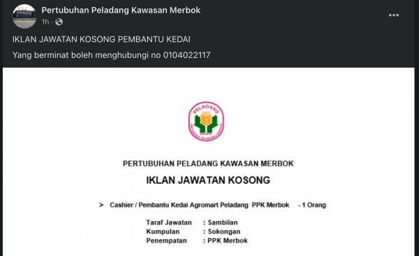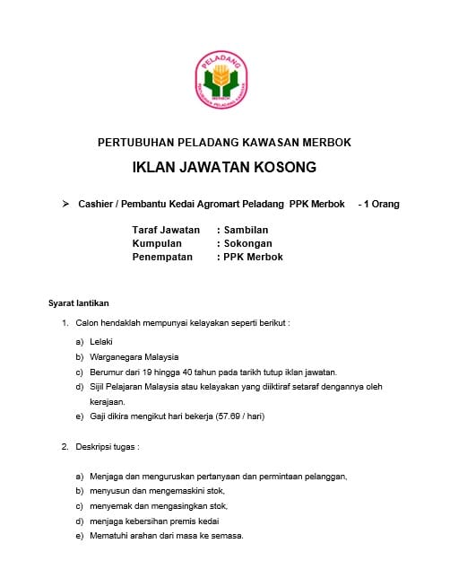 Iklan Jawatan Pertubuhan Peladang Kawasan Merbok
