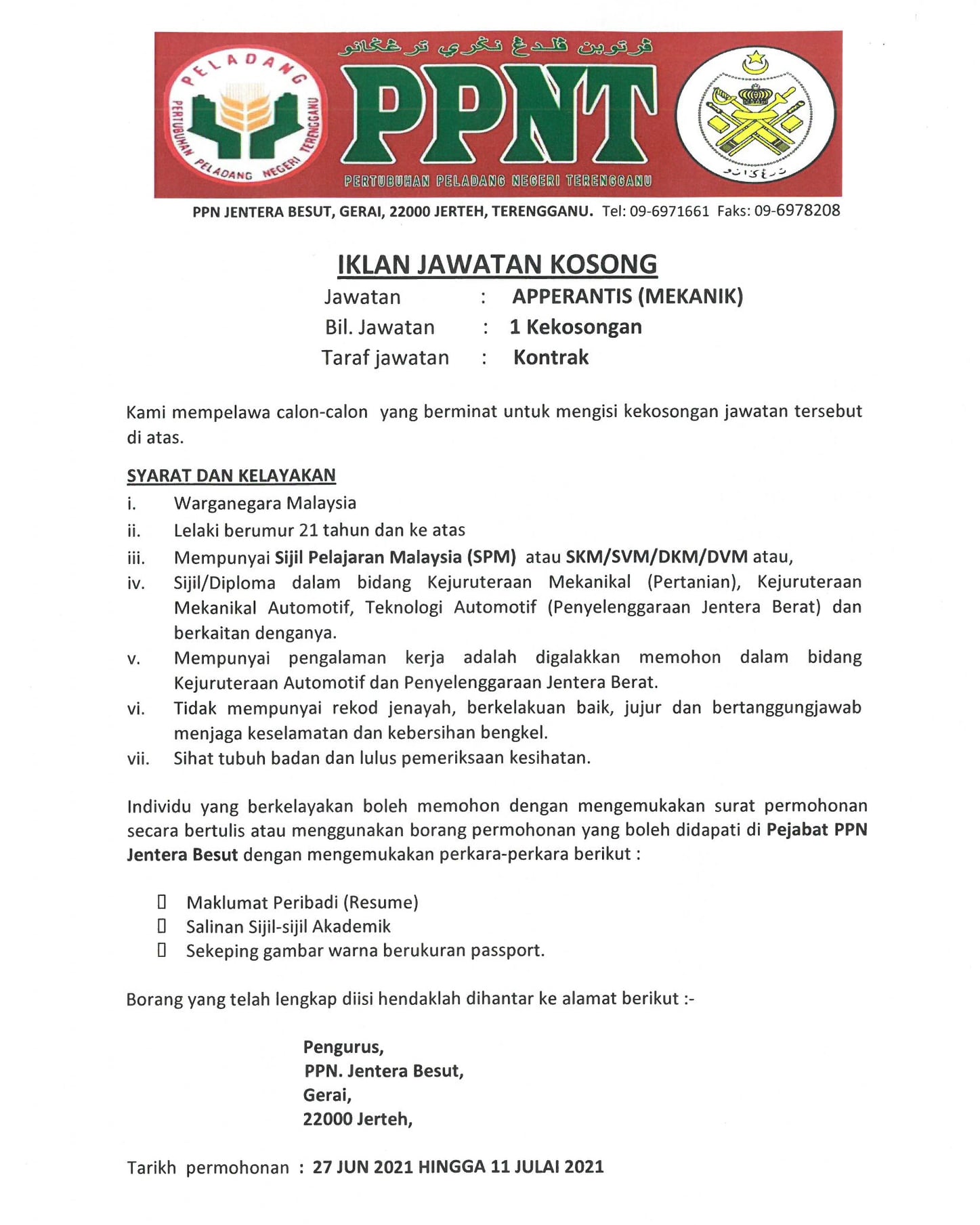 Iklan Jawatan Pertubuhan Peladang Negeri Terengganu