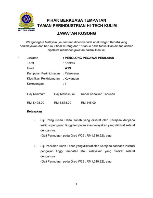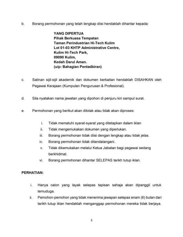 Iklan Jawatan Pihak Berkuasa Tempatan Kulim HI-TECH