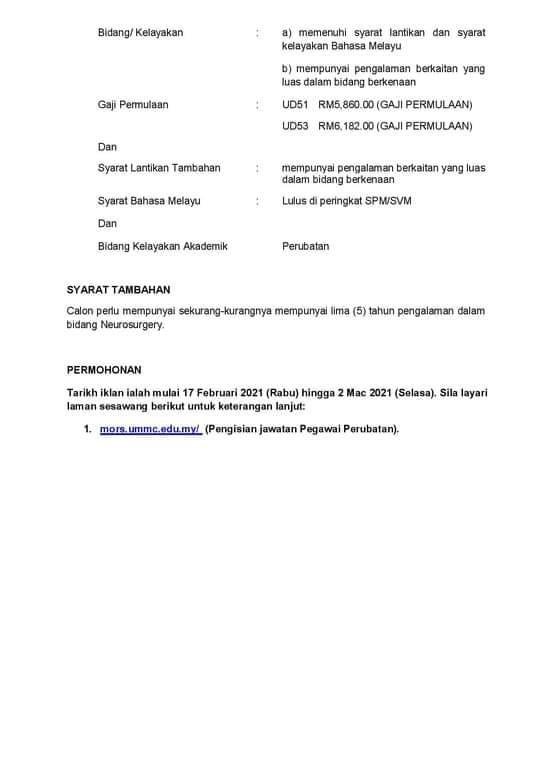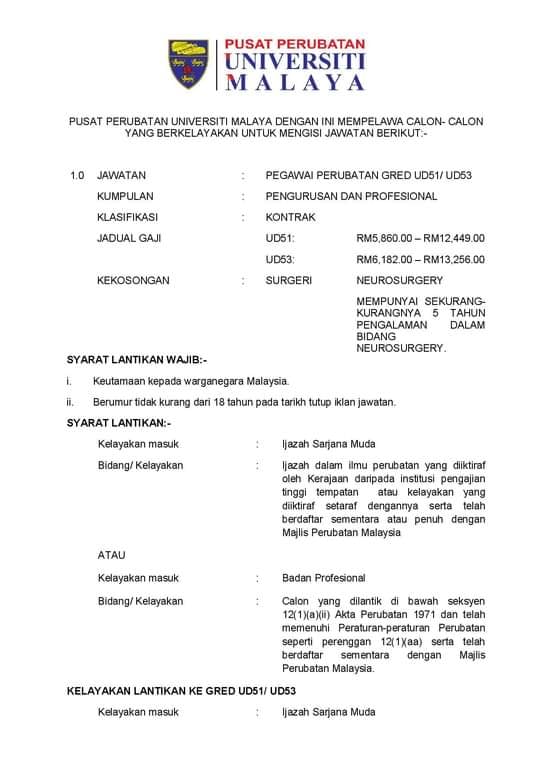 Iklan Jawatan Pusat Perubatan Universiti Malaya (PPUM)