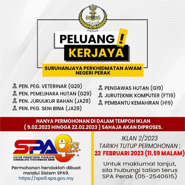 Iklan Jawatan Suruhanjaya Perkhidmatan Awam Negeri Perak Darul Ridzuan