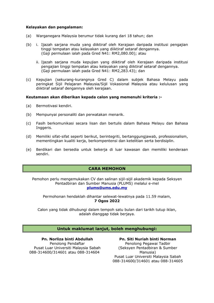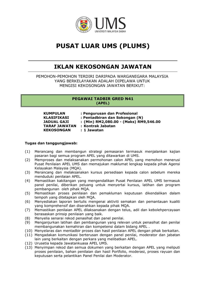 Iklan Jawatan Universiti Malaysia Sabah