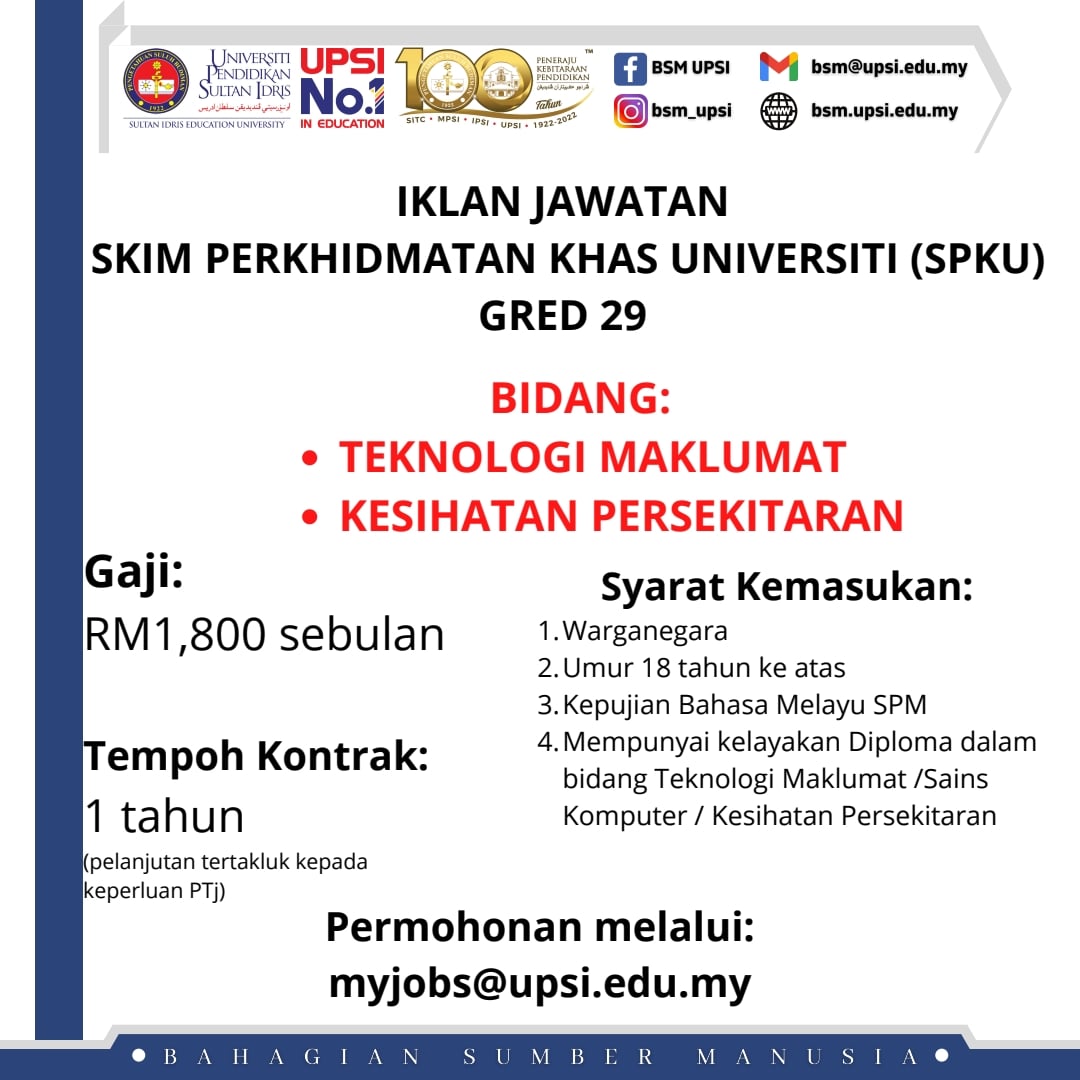 Iklan Jawatan Universiti Pendidikan Sultan Idris (UPSI)