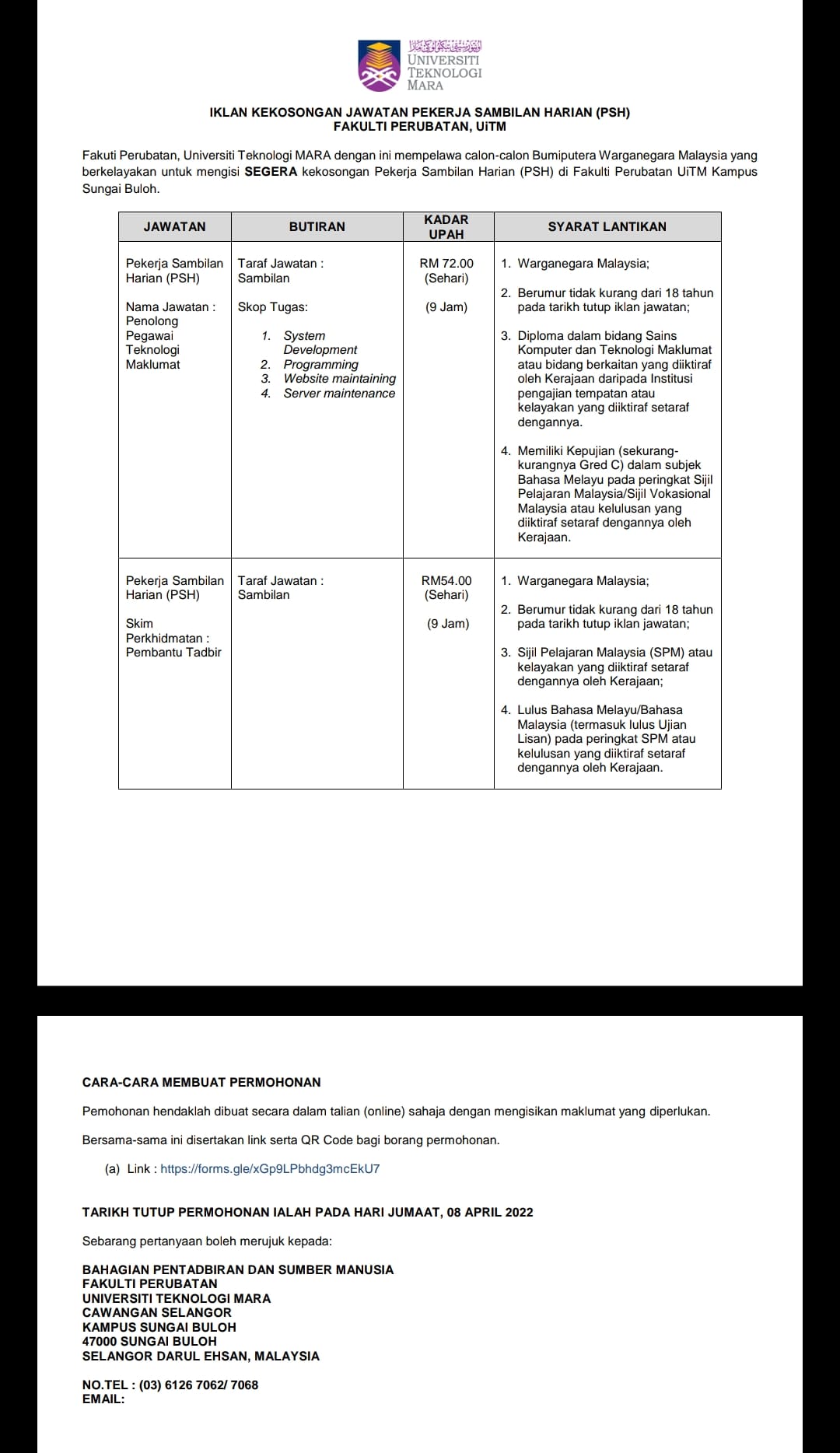 Iklan Jawatan Universiti Teknologi MARA (UiTM)