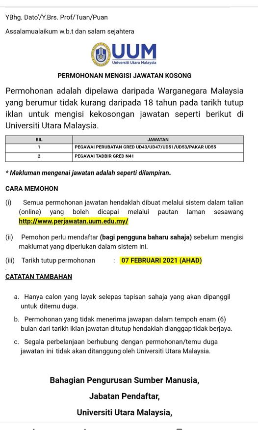 Iklan Jawatan Universiti Utara Malaysia (UUM)