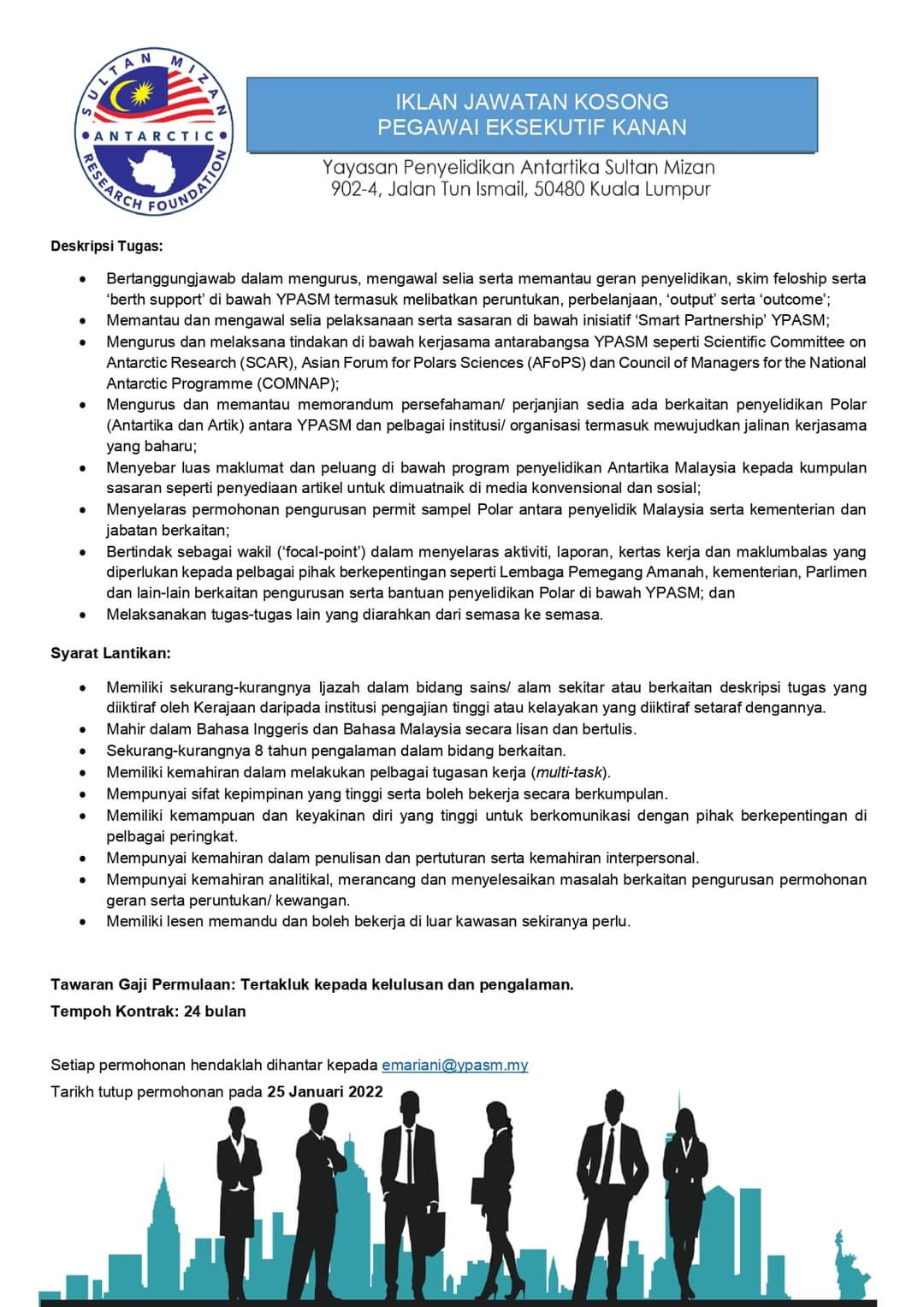 Iklan Jawatan Yayasan Penyelidikan Antartika Sultan Mizan (YPASM)