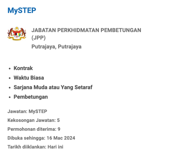- Setelah mendaftar, anda boleh terus login dan mencari bidang kerjaya yang diinginkan mengikut lokasi yang ditawarkan