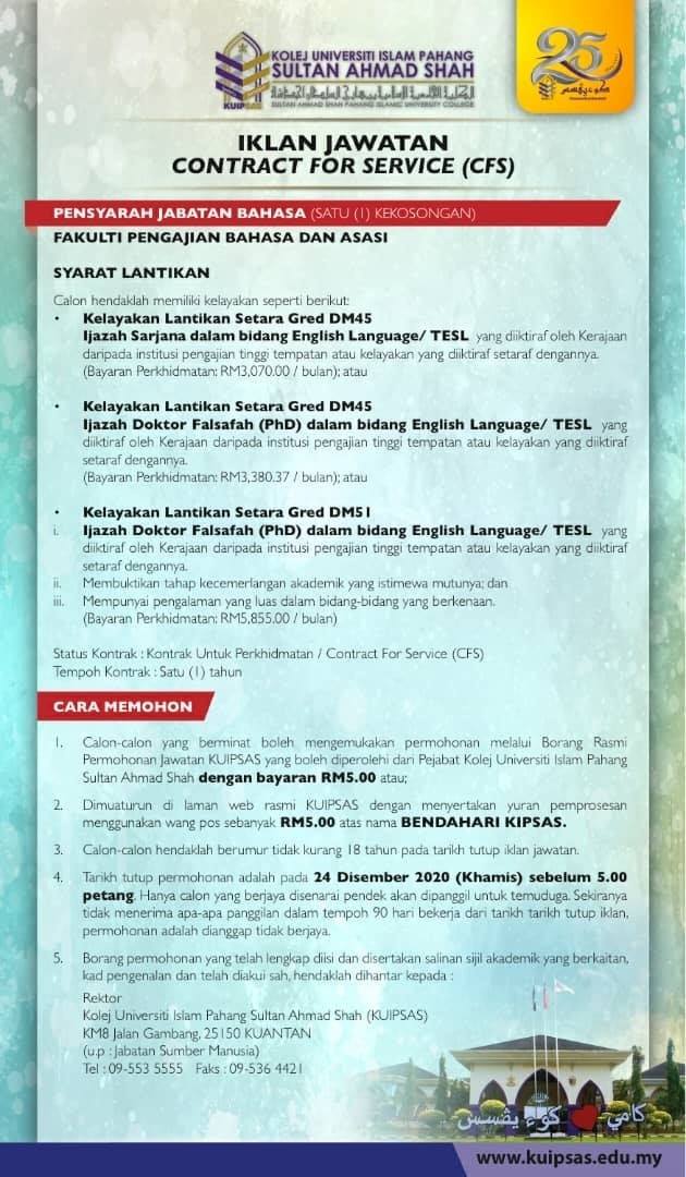 Jawatan Kosong Kolej Universiti Islam Pahang Sultan Ahmad Shah (KUIPSAS)