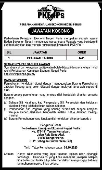 Jawatan Kosong Perbadanan Kemajuan Ekonomi Negeri Perlis (PKNPs)