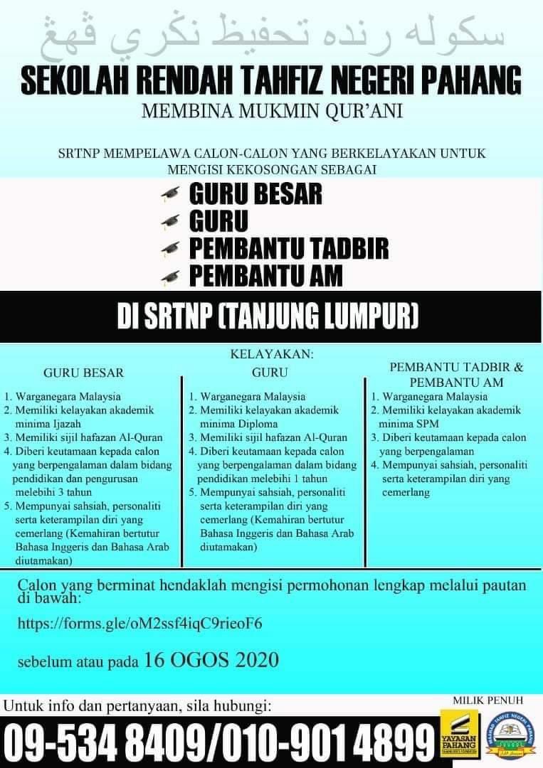 Jawatan Kosong Sekolah Rendah Tahfiz Negeri Pahang