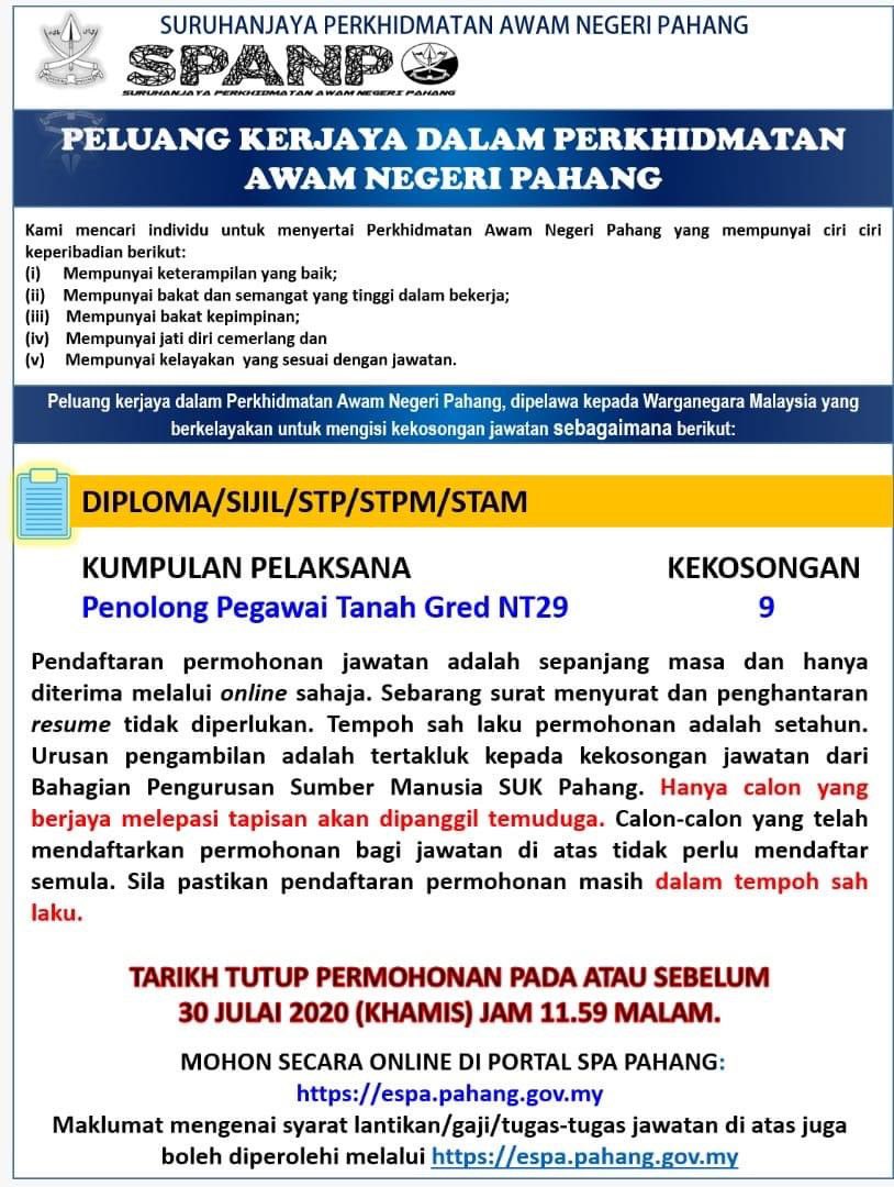 Jawatan Kosong Suruhanjaya Perkhidmatan Awam Negeri Pahang