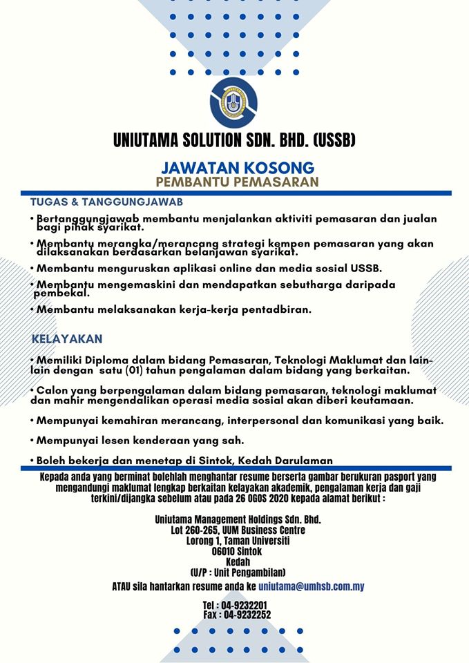 Jawatan Kosong Uniutama Solution Sdn Bhd (USSB)