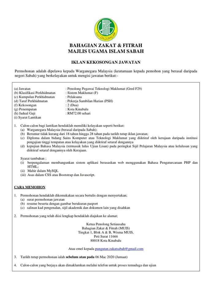 - Nama Majikan: Majlis Ugama Islam Sabah