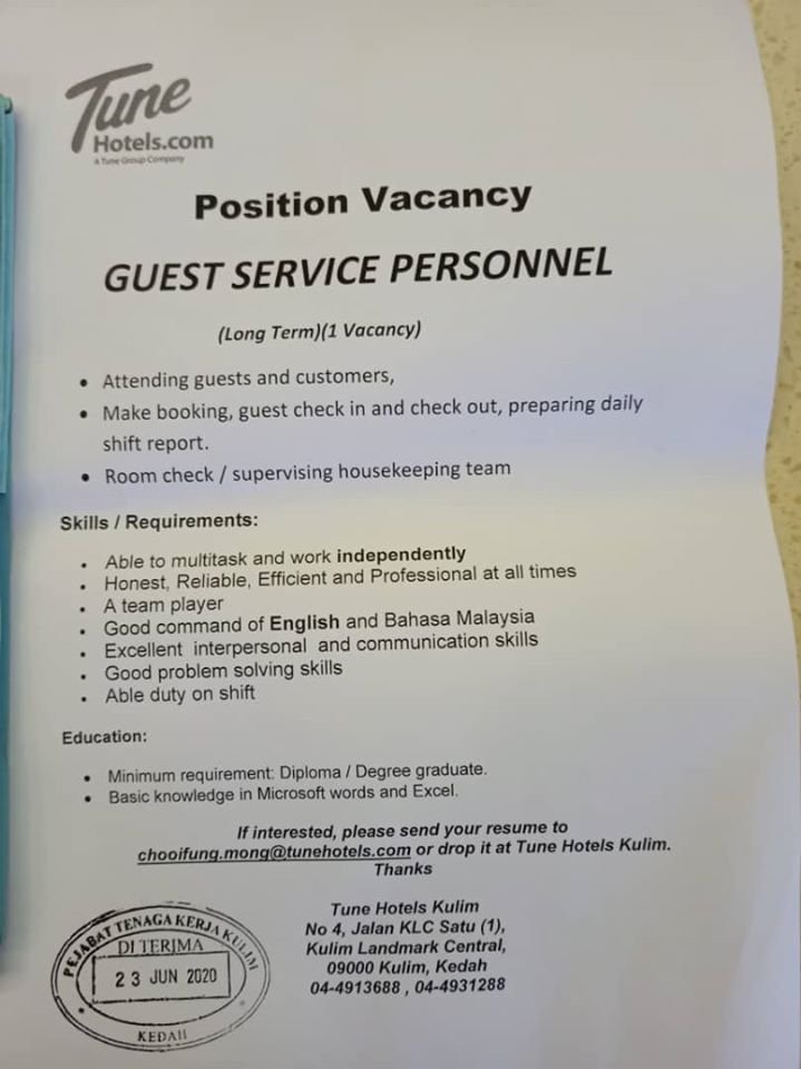 Permohonan Jawatan Kosong Terkini Tune Hotel.