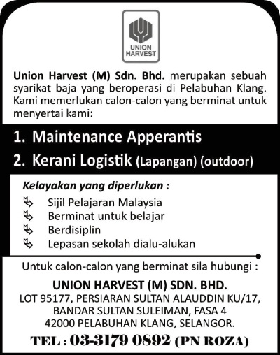 Permohonan Jawatan Kosong Terkini Union Harvest.